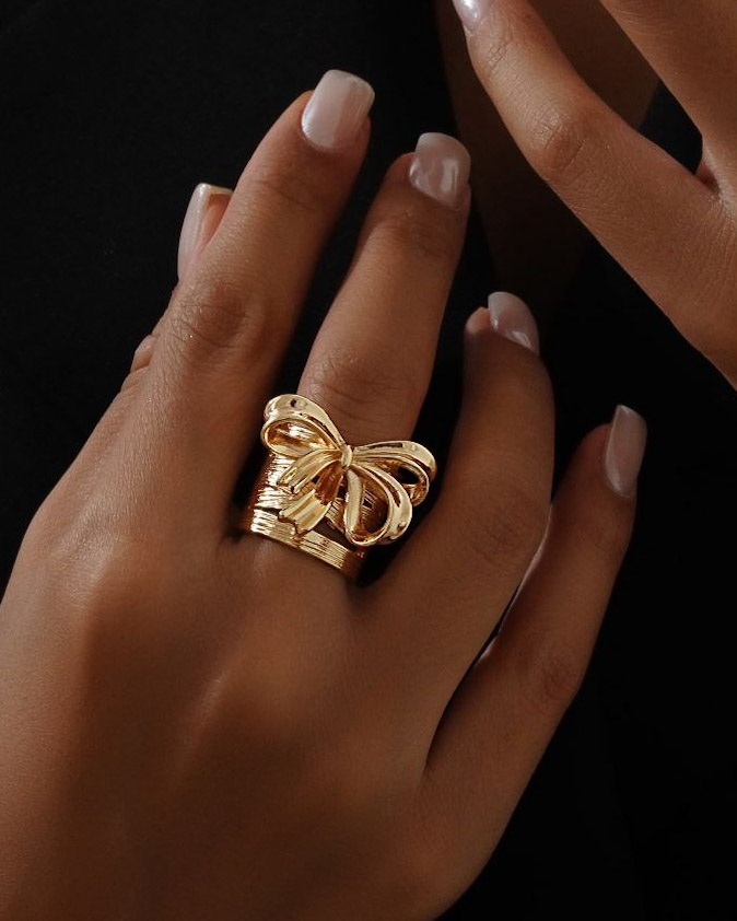 انگشتر پاپیون با رینگ چند لاین کد 8 رنگ طلایی انگشتر پاپیونی طلایی