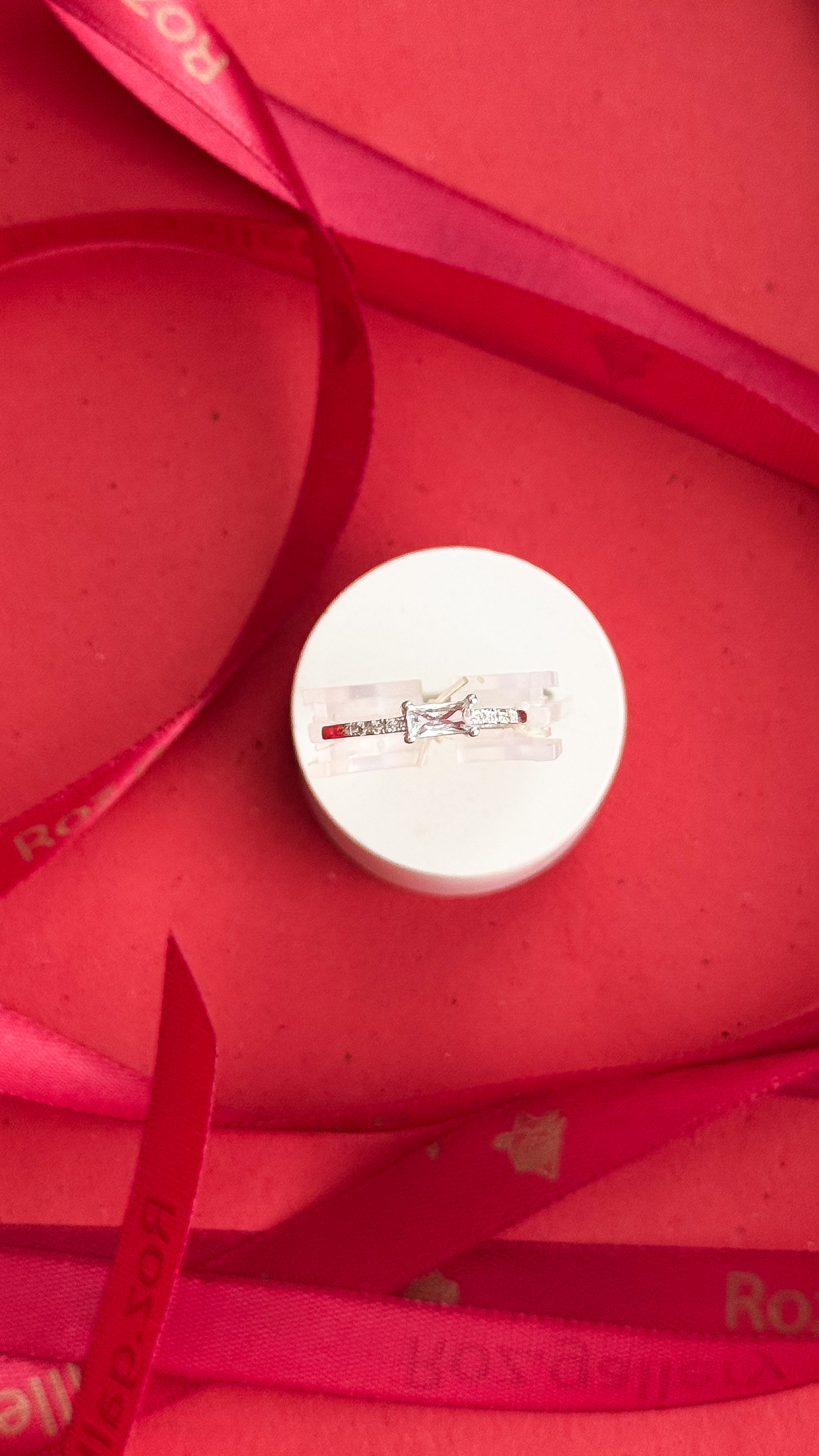 انگشتر ظریف نقره ای با نگین سفید صورتی