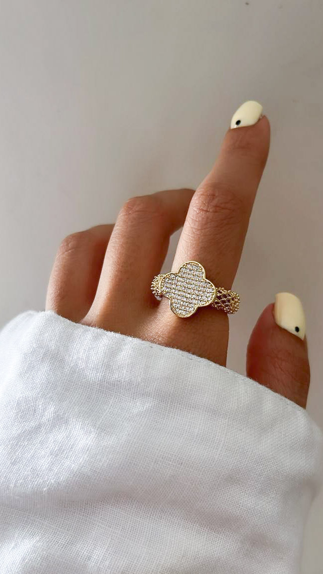 انگشتر گل طلایی جواهری فری سایز انگشتر طلایی