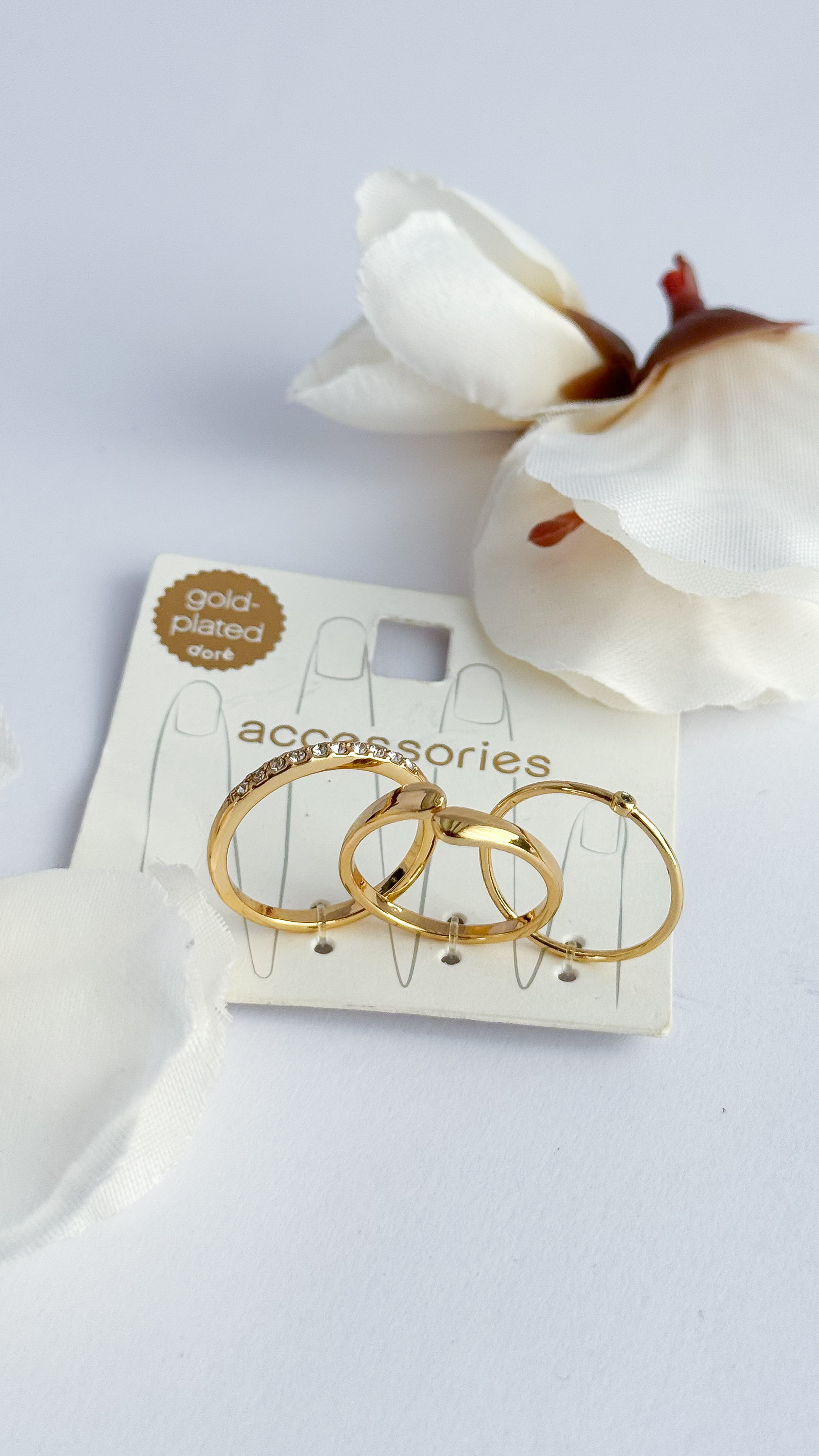 پک انگشتر سه عددی ظریف و مینیمال انگشتر طلایی انگشتر چندتایی