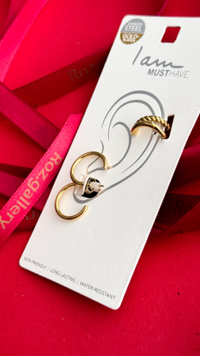 پک سه عددی گوشواره حلقه ای ساده و پیچ و نگینی گوشواره حلقه ای طلایی