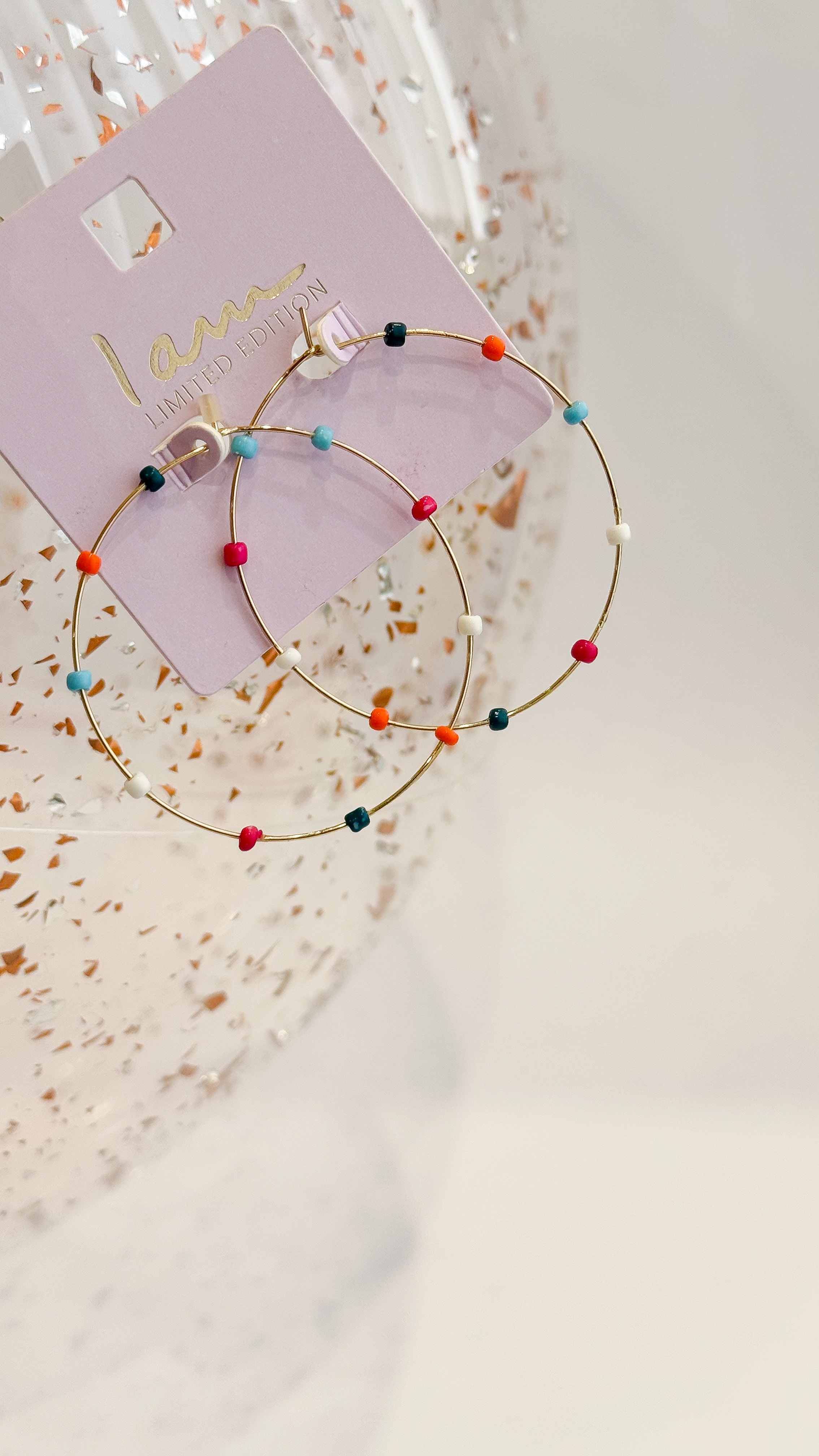 گوشواره حلقه ای مهره رنگی فانتزی گوشواره دخترانه
