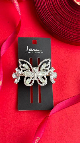 گیره پروانه سایز بزرگ رنگ نقره ای گیره جواهری