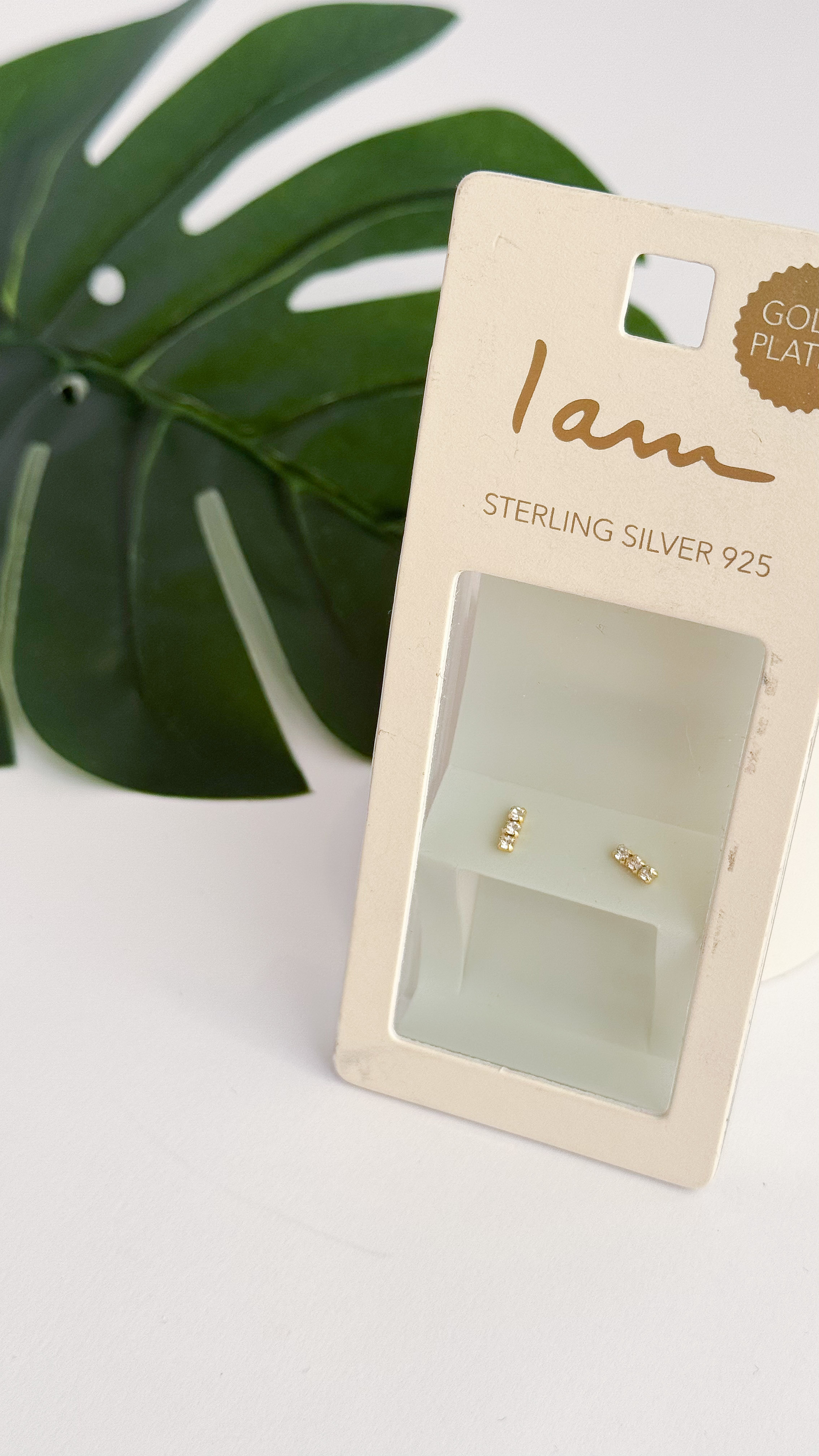 ناموجودگوشواره نقره 925 مینیمال سه سنگین پایه طلایی