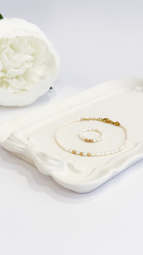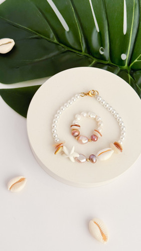 ست دستبند و انگشتر مروارید طرح دریا با طلا البرنادو ۱۸ عیار