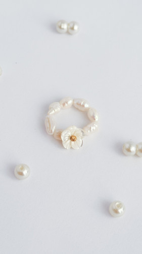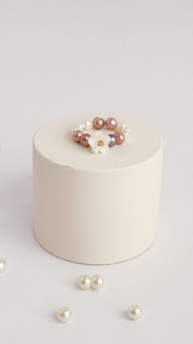 انگشتر گل صدف طبیعی با مروارید پرورشی و گوی البرنادو نقره ای طلا ۱۸ عیار انگشتر طلا