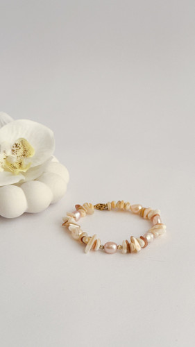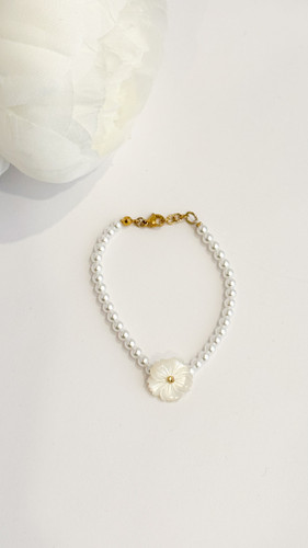دستبند مروارید shell وگل صدف طبیعی و گوی البرنادو طلا ۱۸ عیار دستبند شنل طلا دستبند دخترانه