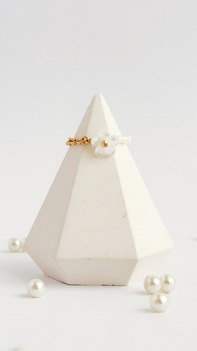 ناموجودانگشتر مروارید پرورشی اصل و زنجیر طلا ۱۸ عیار انگشتر طلا انگشتر گل