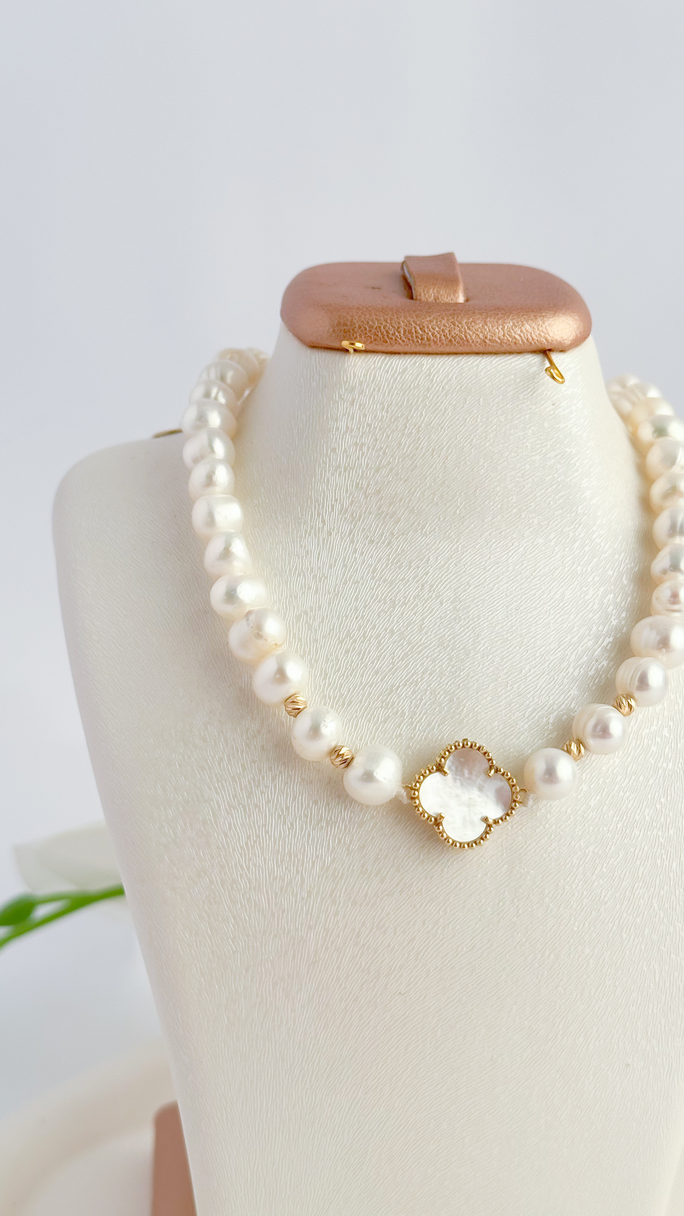 گردنبند مروارید پرورشی با پلاک ونکلیف صدفی طلا ۱۸ عیار گردنبند ونکلیف گردنبند زنانه