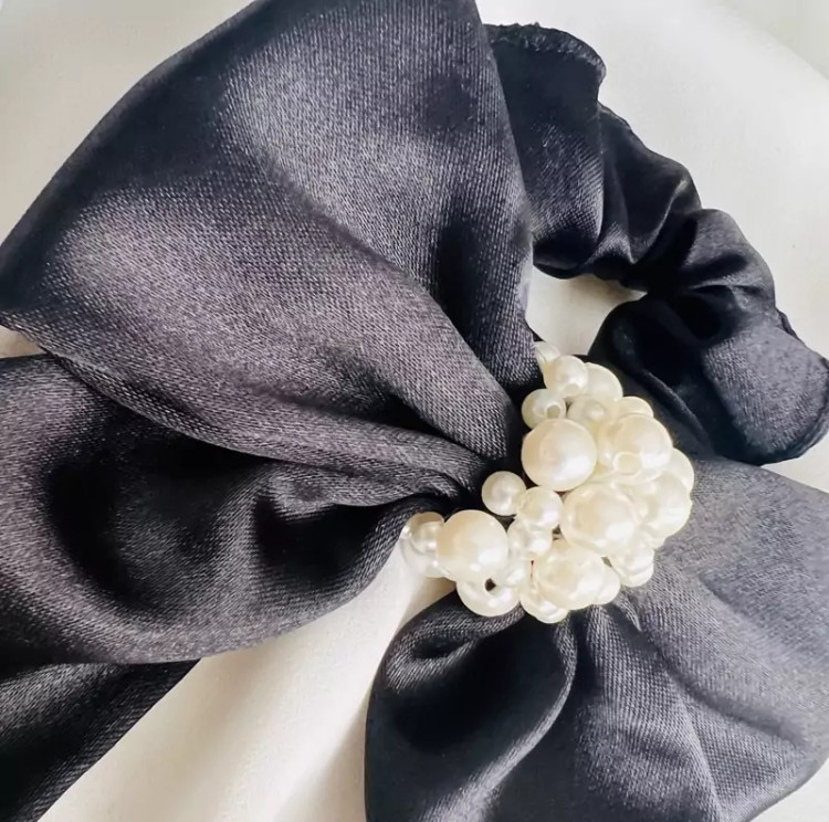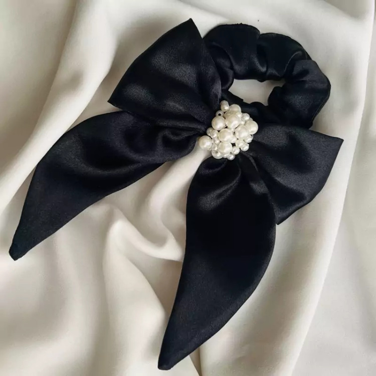 کش اسکرانچی متصل به پاپیون سایز بزرگ ساتنی مروارید دوزی شده