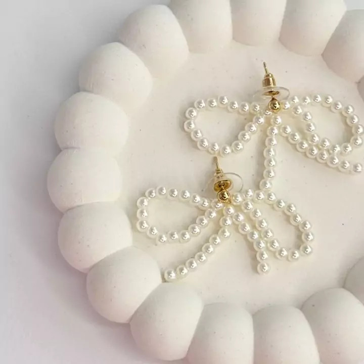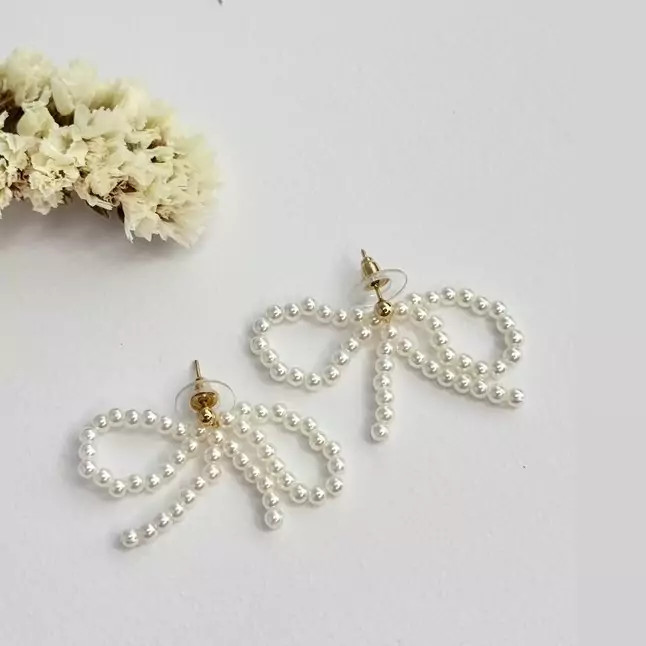 گوشواره مرواریدی پاپیون فوق العاده خاص و شیک گوشواره مروارید گوشواره پاپیون گوشواره ترند