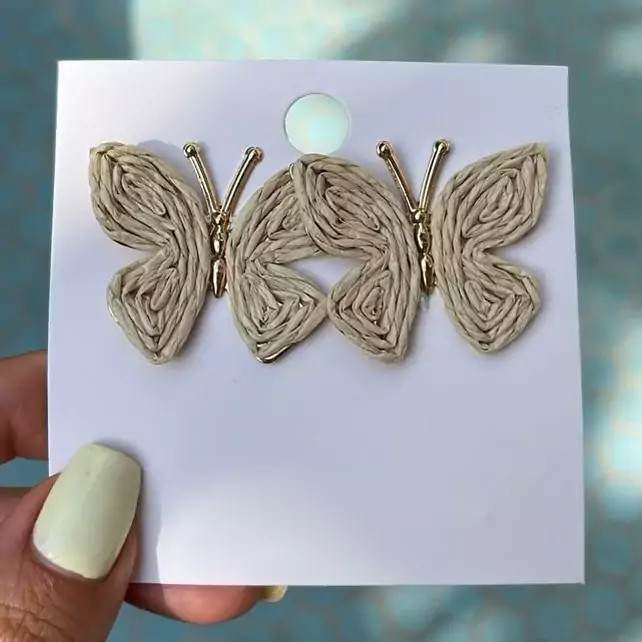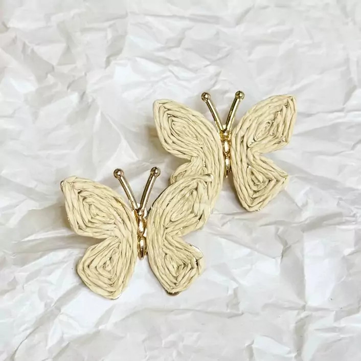 گوشواره پروانه حصیری رنگ کرمی خاص و ترند گوشواره حصیری