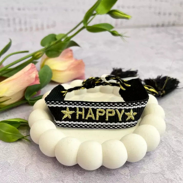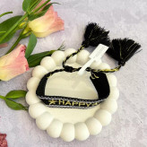دستبند پارچه ای مشکی با دوخت طلایی قابل تنظیم