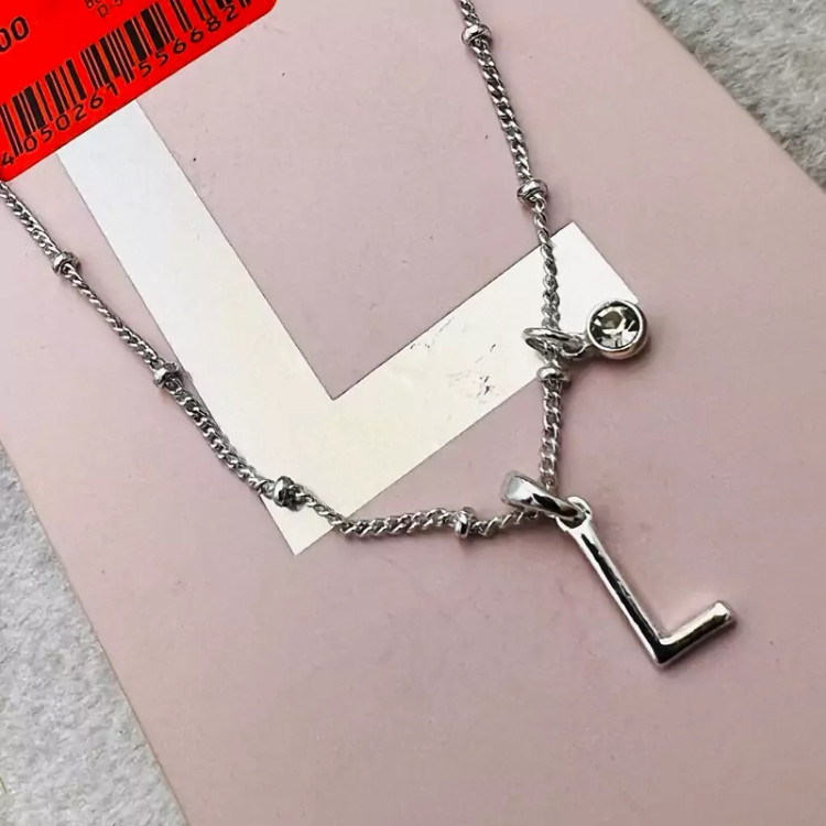 گردنبند حرف L زنجیر طرحدار اویز نگین دار روکش نقره
