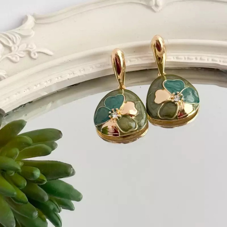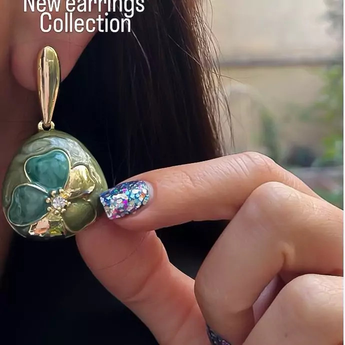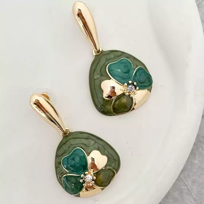 گوشواره میناکاری سبز خوشرنگ گوشواره گل گوشواره سبز