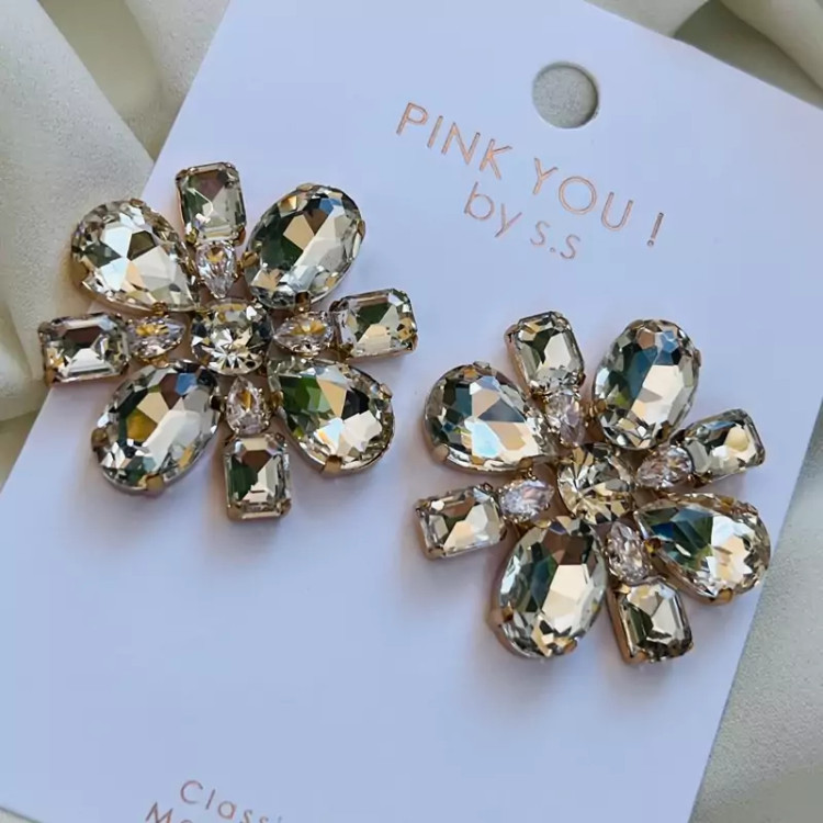 گوشواره مجلسی zara تمام سنگ نقره ای جواهری با کیفیت درجه یک پایه طلایی