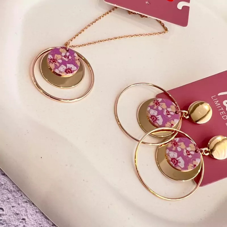 نیم ست جذاب گل صورتی شامل رو مانتویی و گوشواره نازو ملیح