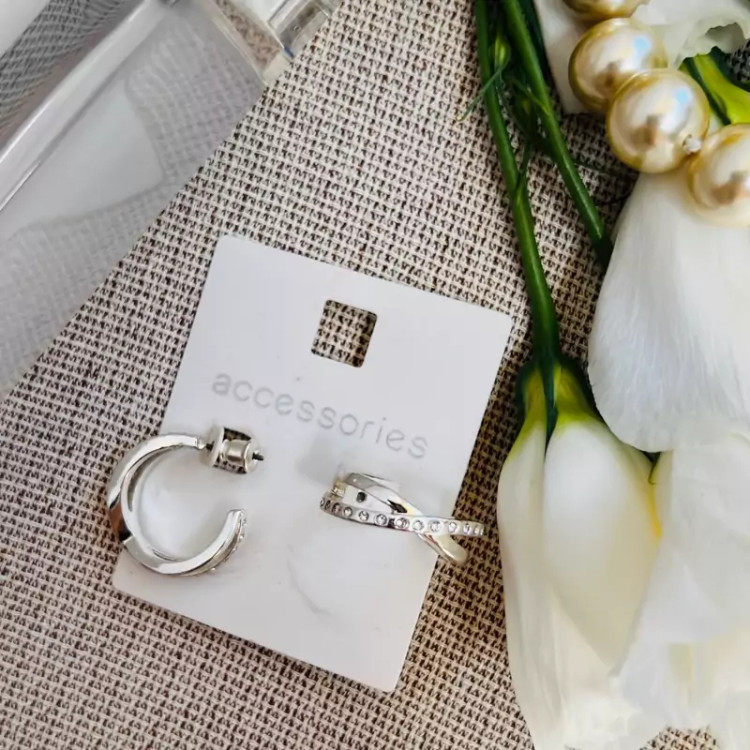 گوشواره دولاین ضرب دری نقره ای نگین دار