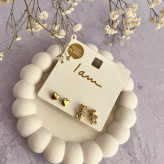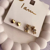 پک دو عددی گوشواره قلبی و تدی مینیمال نگین دار بسیار کیوت و جذاب کار ترندی خاص مشابه طلا مناسب برای هدیه