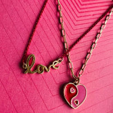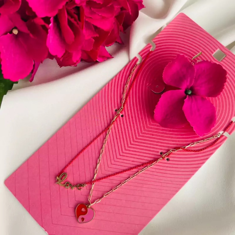 پک گردنبند دو عددی love وقلب قرمز صورتی