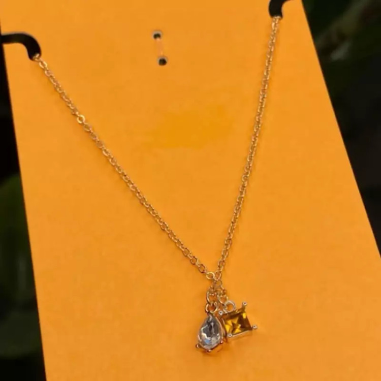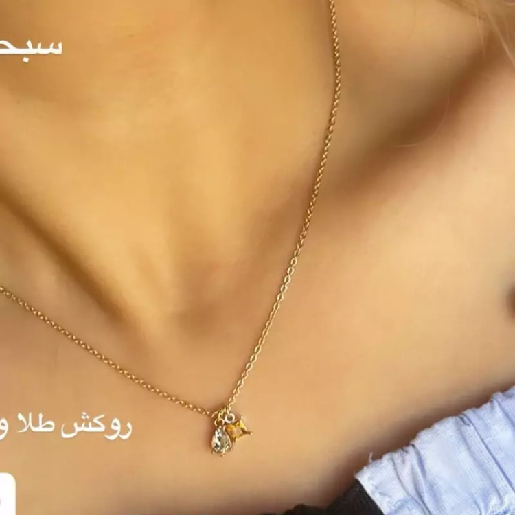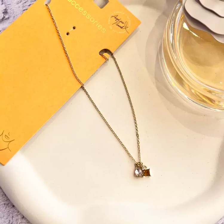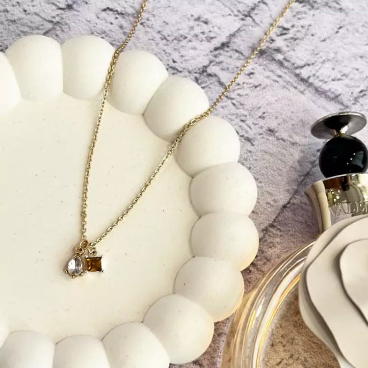گردنبند نگین جواهری ظریف و شیک با نگین سفید و قهوه ای خوشرنگ