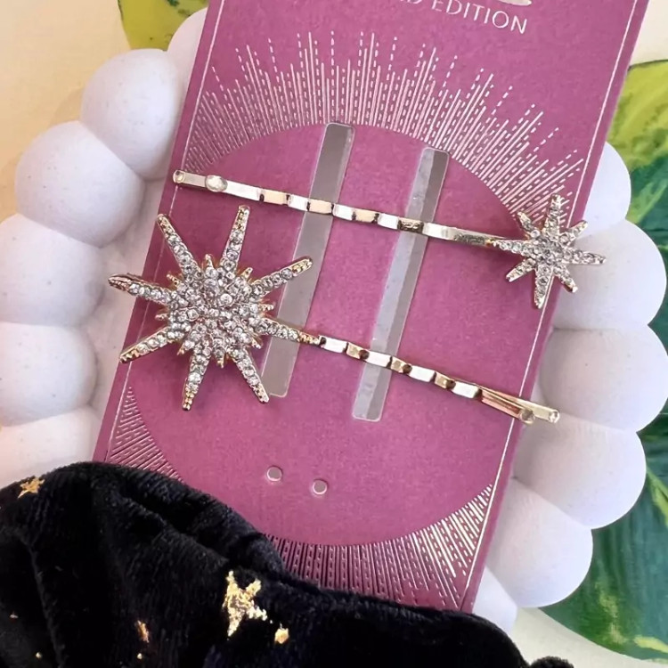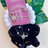 پک گیره نگینی ستاره و کش مخمل با ستاره طلایی فوق العاده لوکس و شیک
