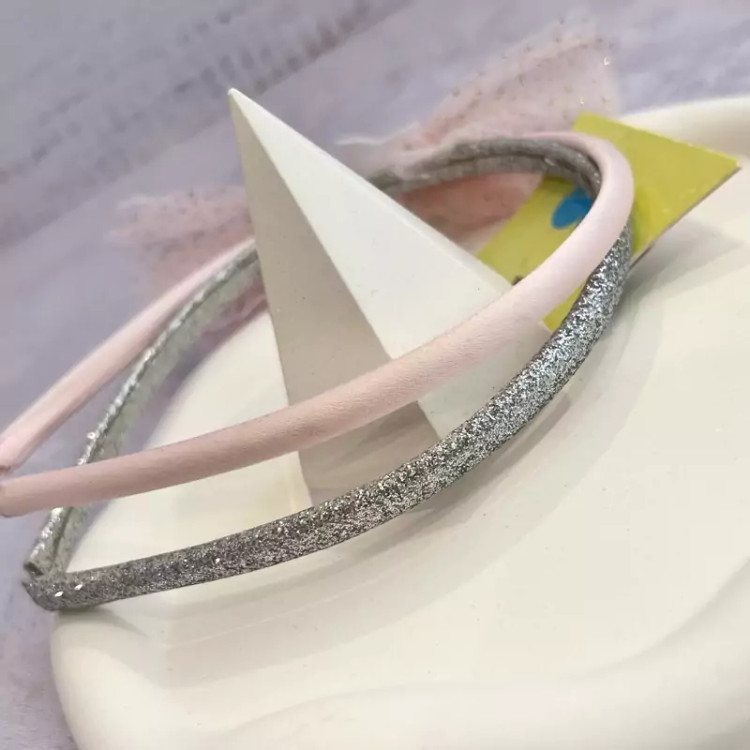 پک تل دو عدد دخترانه صورتی پاپیون توری و نقره ای شاینی