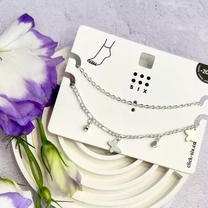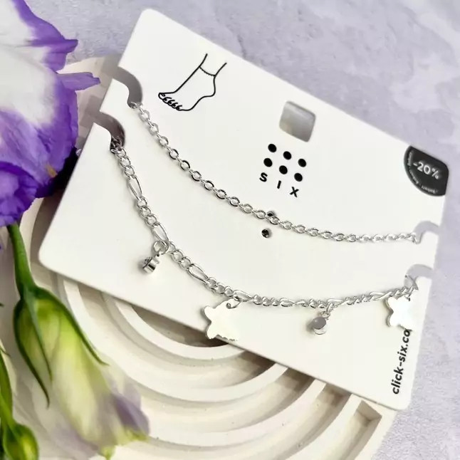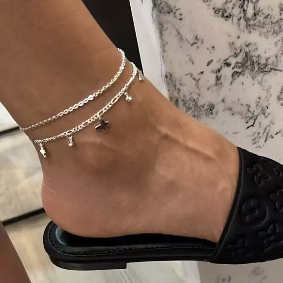 پک دو عددی پابند زنجیری نقره ای و پابند اویز نگین و پروانه