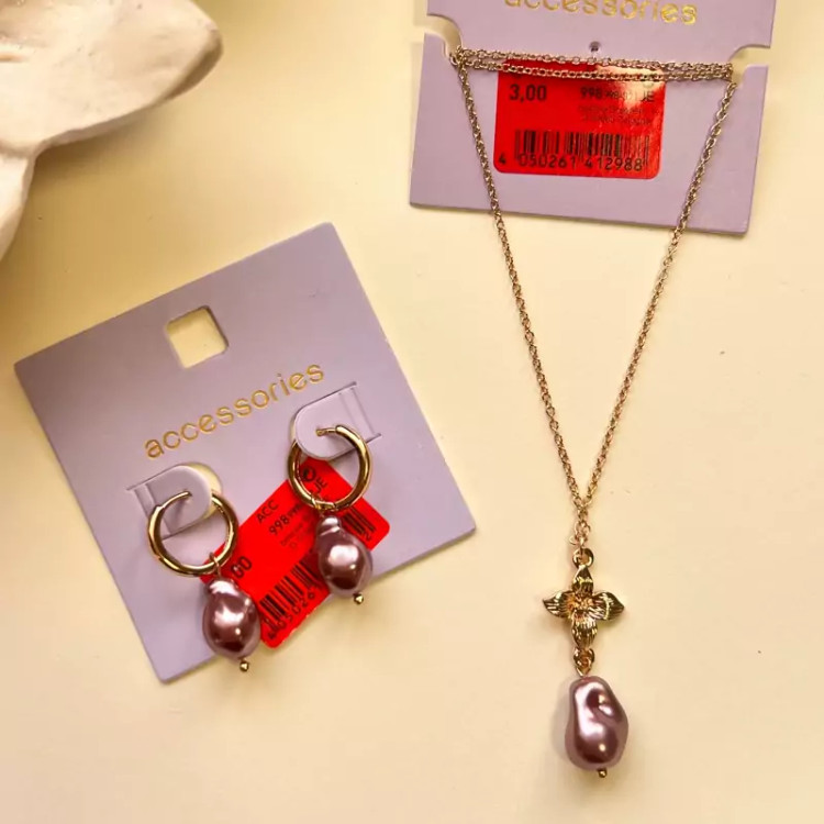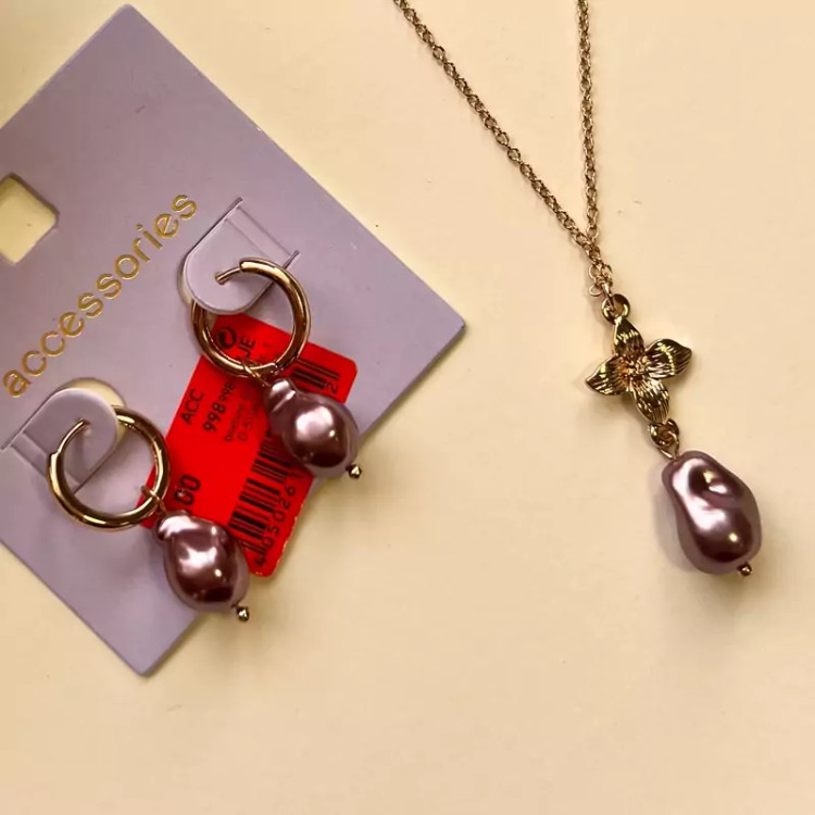 نیم ست مروارید طبیعی بنفش بسیار شیک و خاص