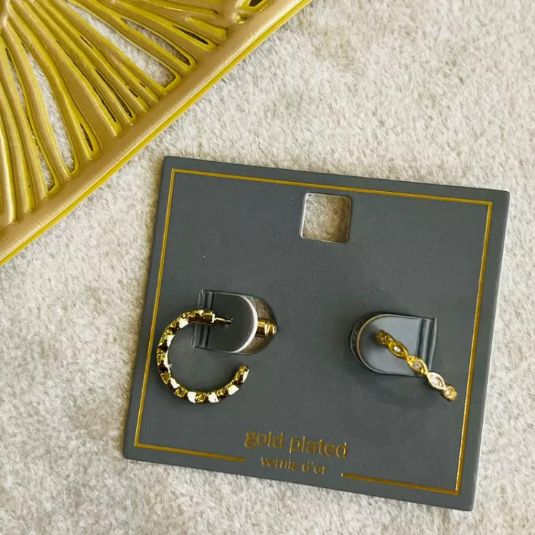 گوشواره نیم حلقه روکش طلا نگین دار مشابه طلا