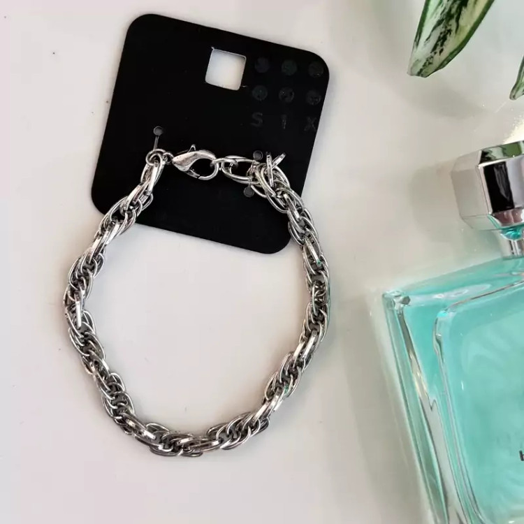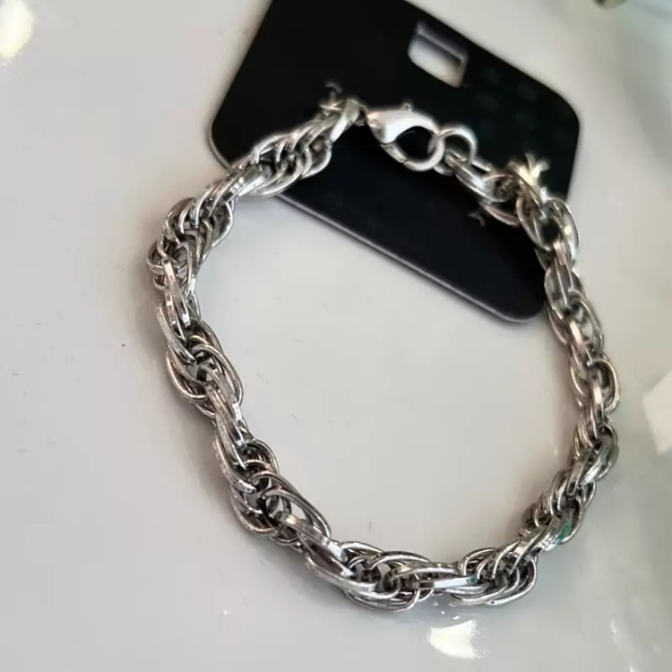 دستبند مردانه زنجیری نقره ای با خش مشکی با کیفیت و وارداتی رنگ ثابت