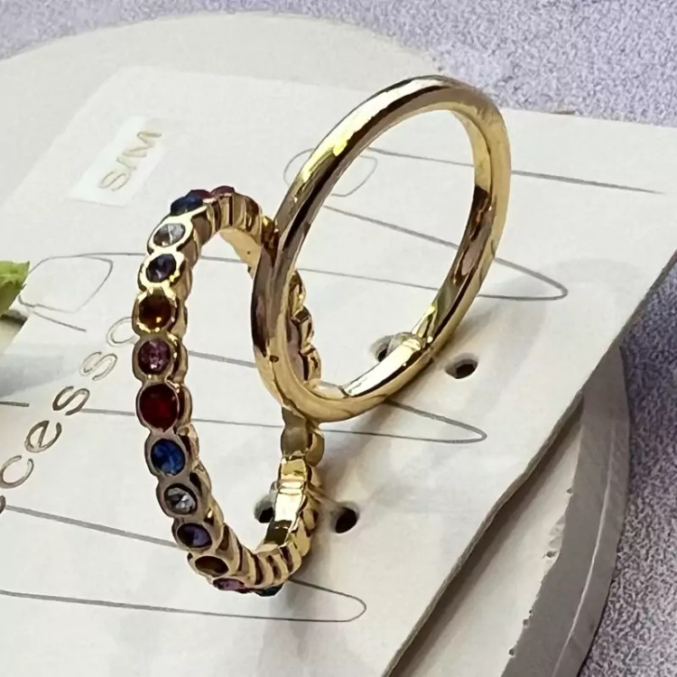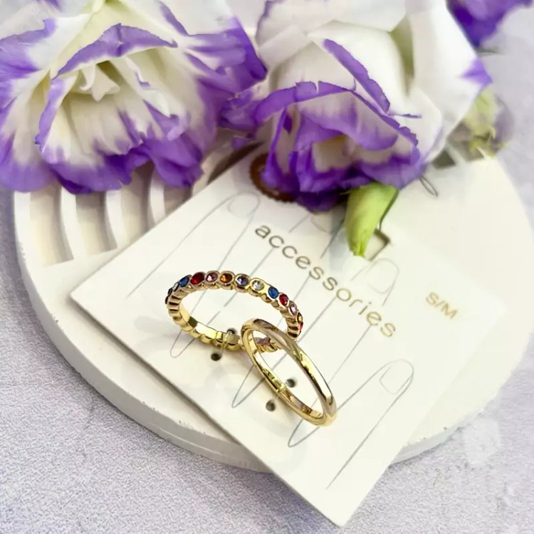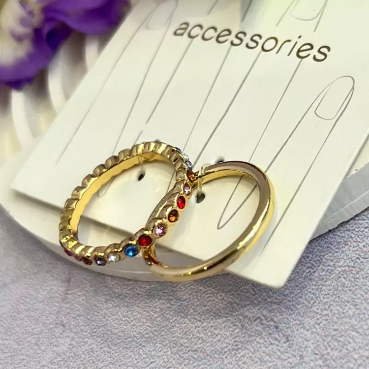پک انگشتر دو عددی رینگ ساده و حلقه فول نگین رنگی