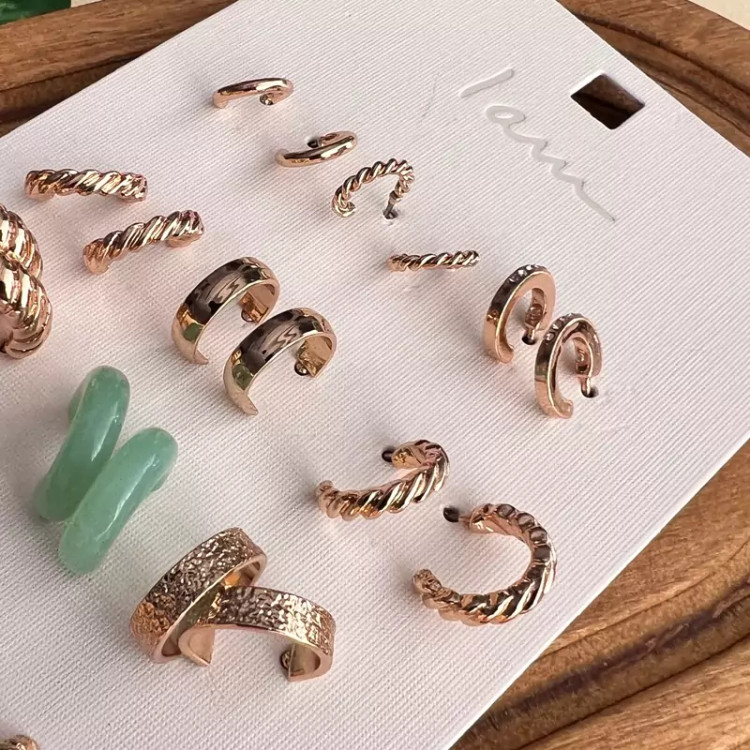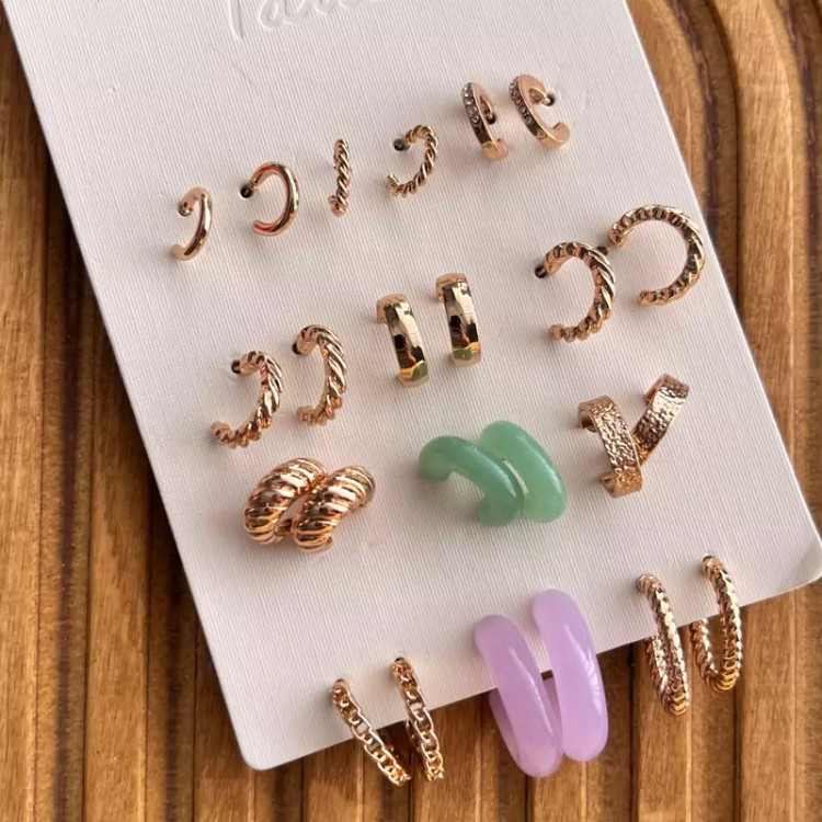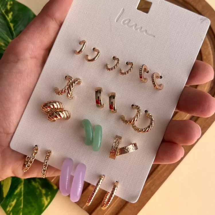 پک دوازده عددی گوشواره مینیمال نیم حلقه ای پک گوشواره حلقه ای اقتصادی شامل حلقه های یک سانتی و دو سانتی