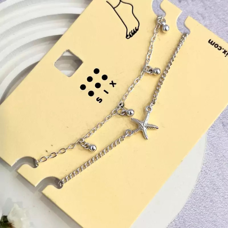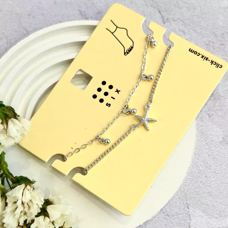 پک دو عددی پابند اویز توپی و اویز ستاره دریایی نقره ای
