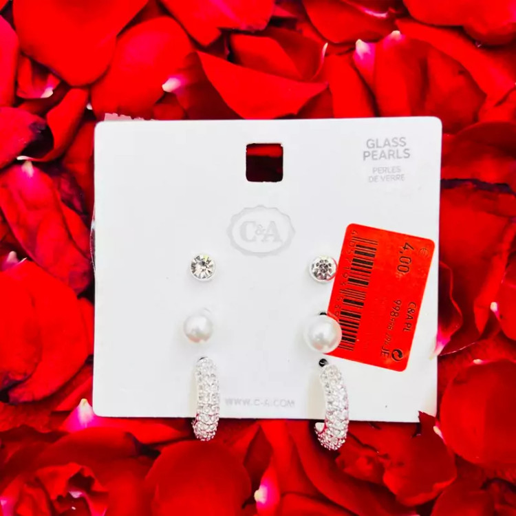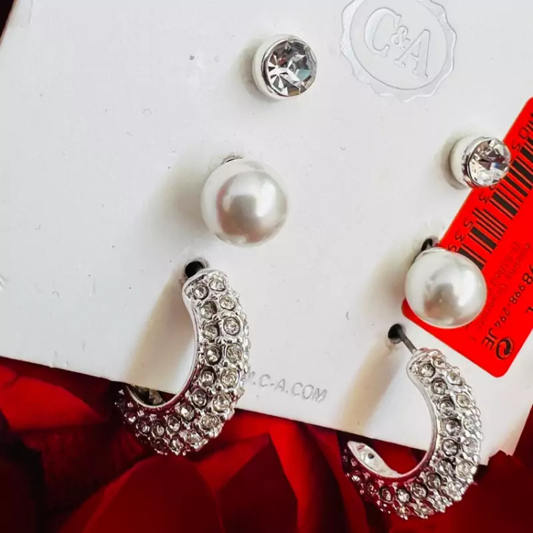 پک سه عددی گوشواره ی مروارید نگین و نیم حلقه فول نگین