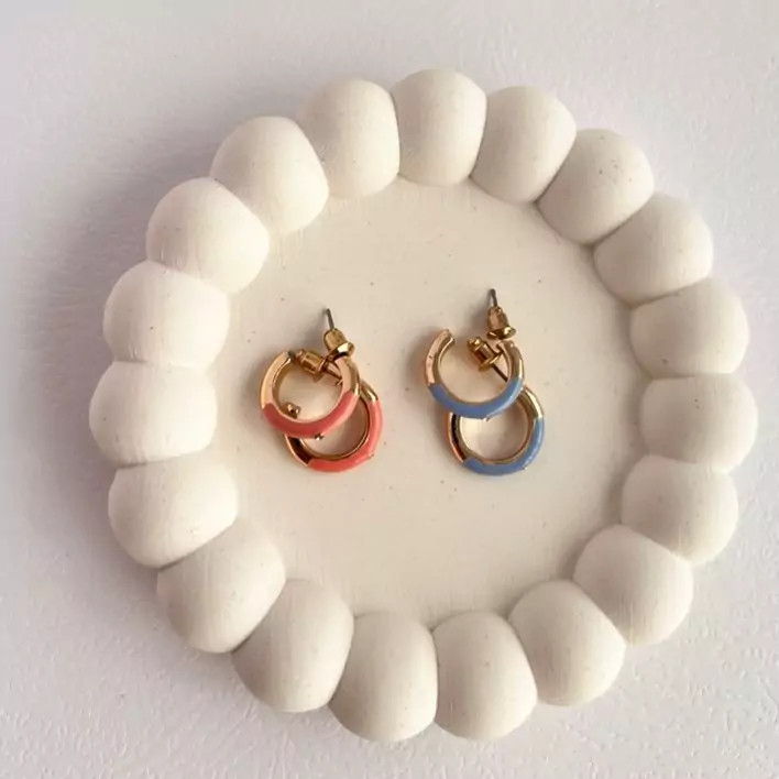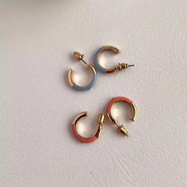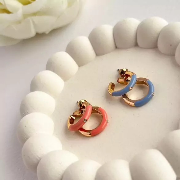 پک دو عددی گوشواره حلقه ای میناکاری یاسی و گلبهی نگینی گوشواره یاسی گوشواره گلبهی گوشواره میناکاری گوشواره رنگی