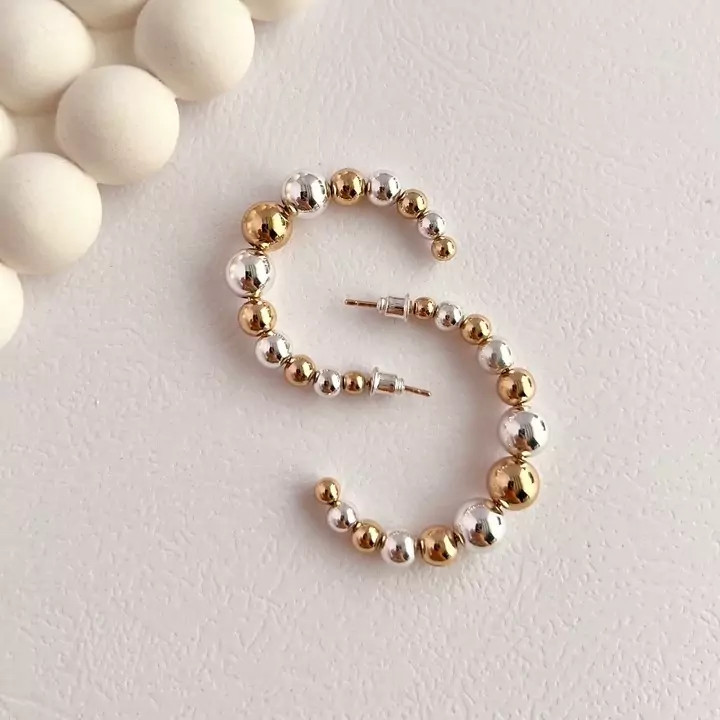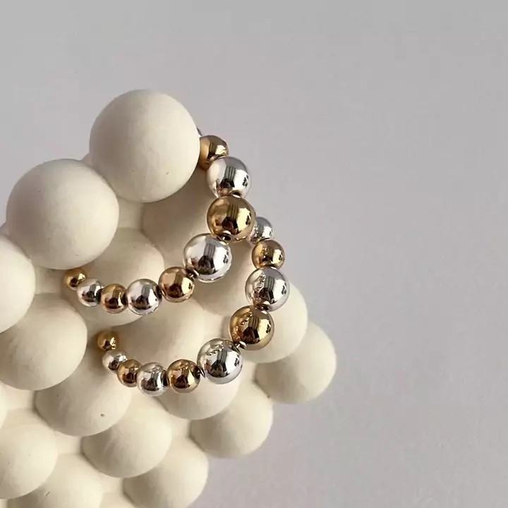 گوشواره توپی نقره ای طلایی حلقه ای زیبا و شیک گوشواره حلقه ای
