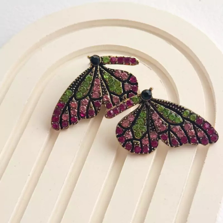 گوشواره پروانه نیمه فول نگین جواهری خوشرنگ و جذاب گوشواره جواهری