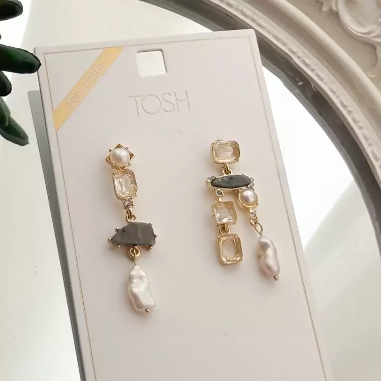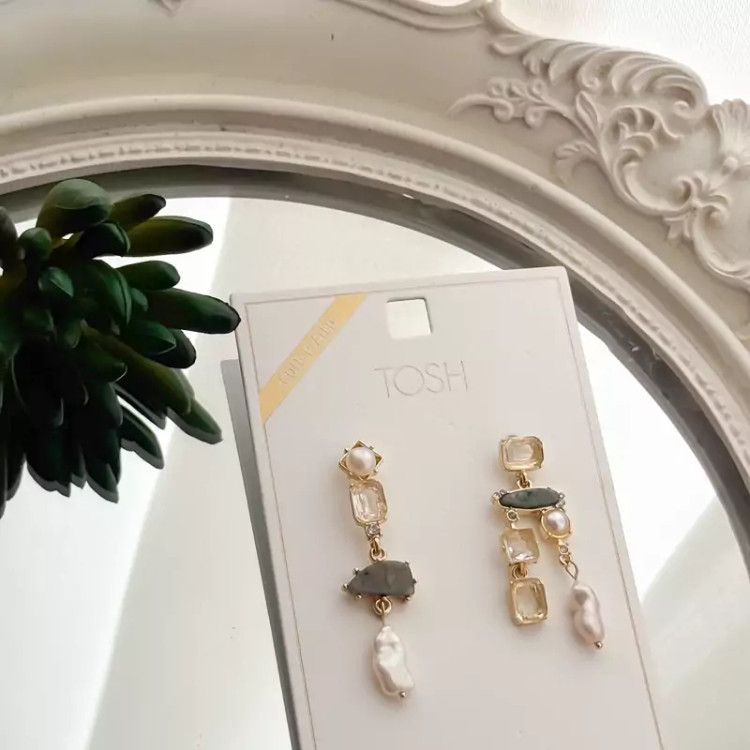 پک گوشواره تا به تا جواهری با سنگ و مروارید طبیعی برند tosh