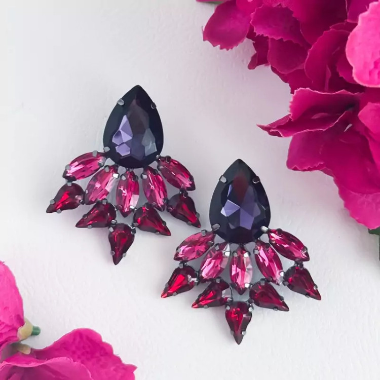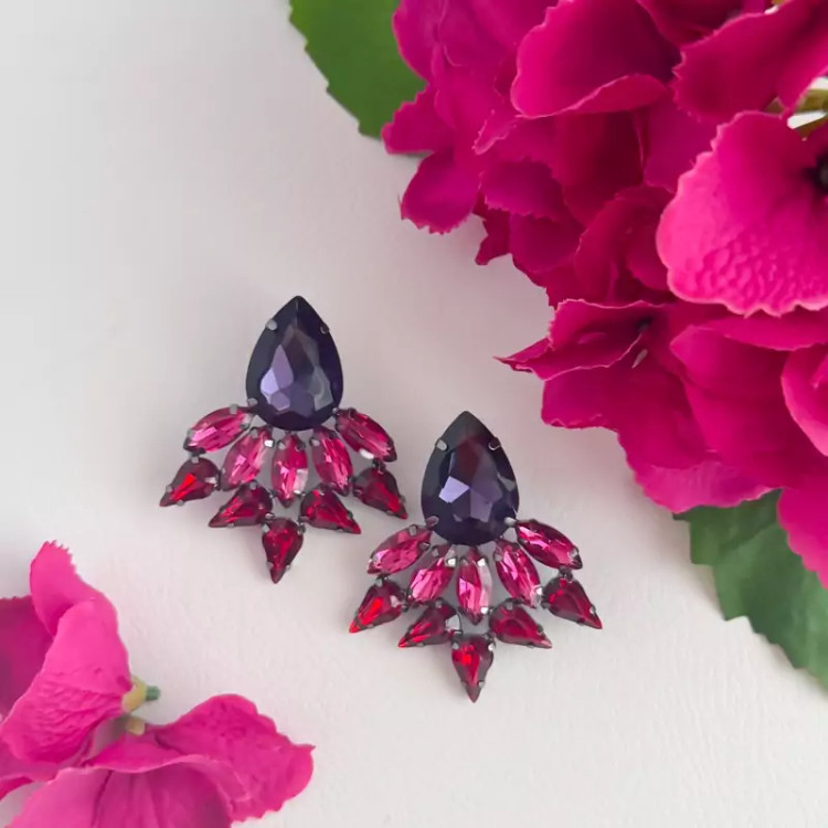 گوشواره جواهری اشکی گوشواره بنفش گوشواره سرخابی گوشواره مجلسی