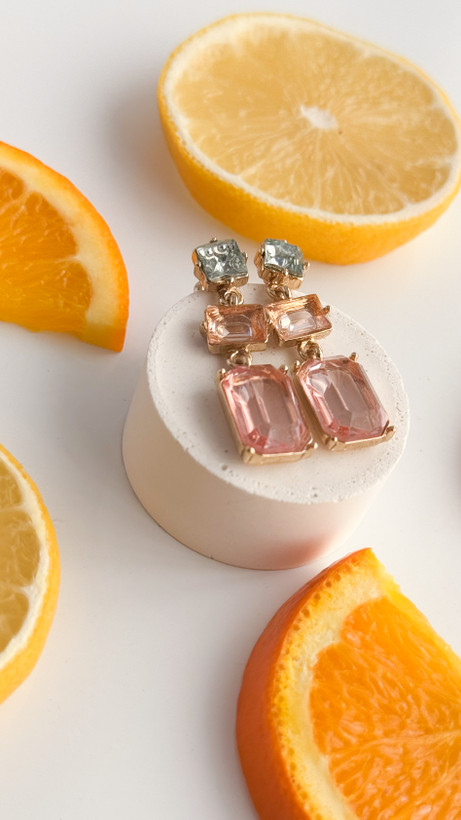 گوشواره جواهری با کریستال رنگی شفاف گوشواره فانتزی