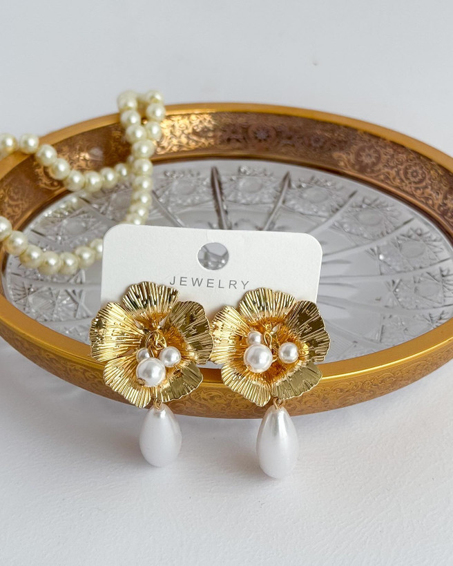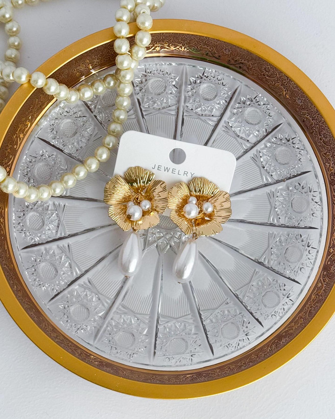 گوشواره گل مرواریدی فوق لوکس و خاص گوشواره مروارید گوشواره مرواریدی
