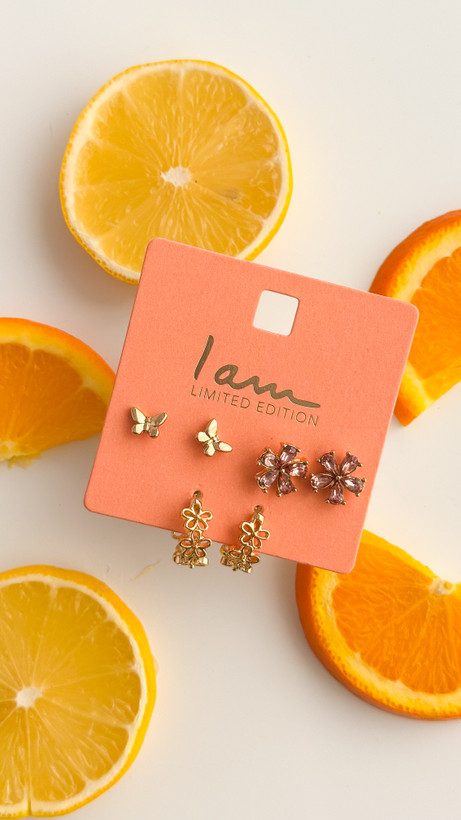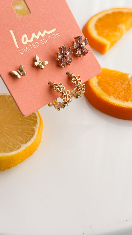پک سه عددی گوشواره میخی گل و پروانه