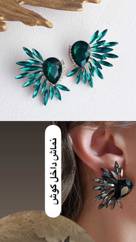 گوشواره جواهری سبز گوشواره زمرد گوشواره مجلسی