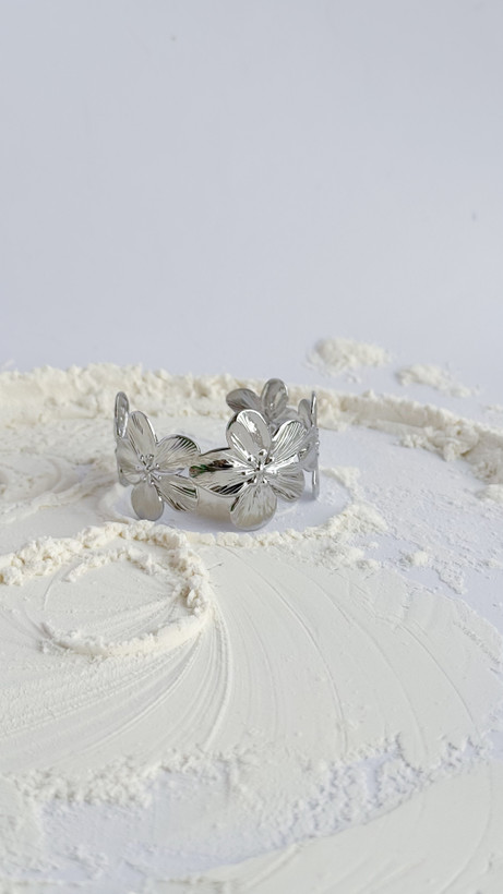 بنگل گل درشت سیلور دستبند گل دستبند نقره ای