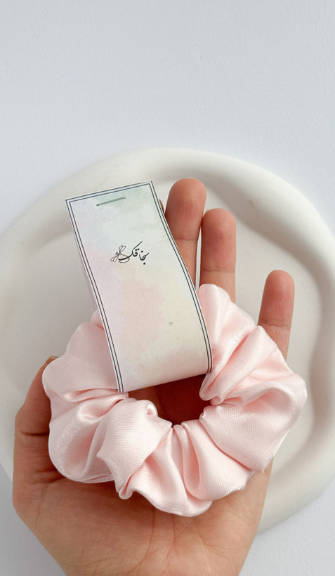 کش اسکرانچی ساتن صورتی پنکیکی کش صورتی کش ساتن