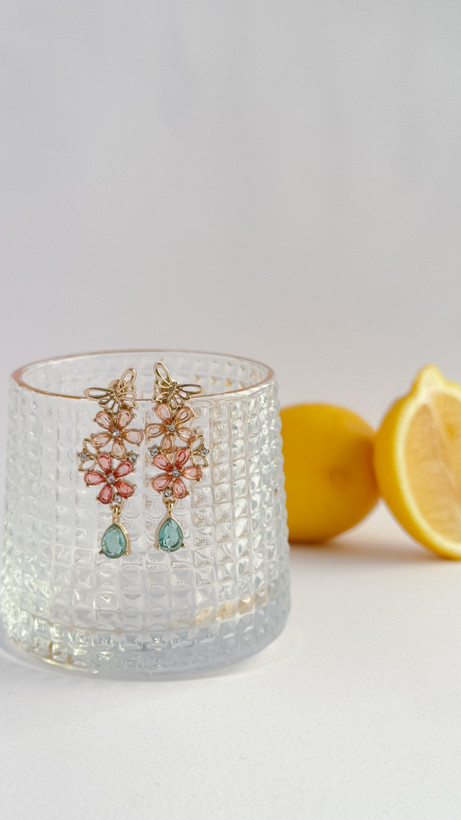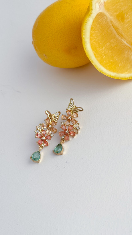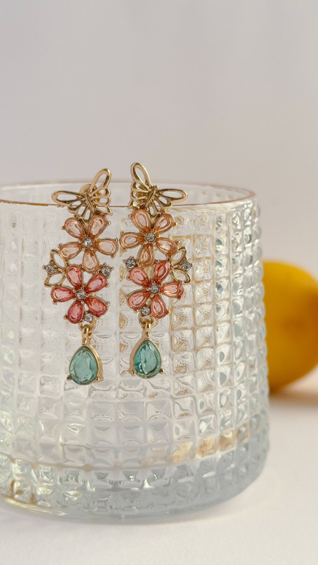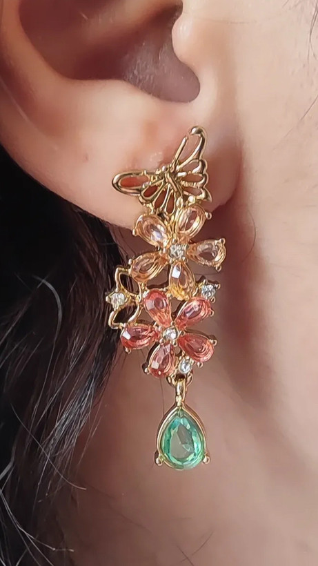گوشواره گل و پروانه با سنگ های کریستالی رنگی گوشواره پروانه