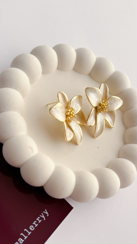 گوشواره گل میناکاری سفید گوشواره میناکاری گوشواره سفید