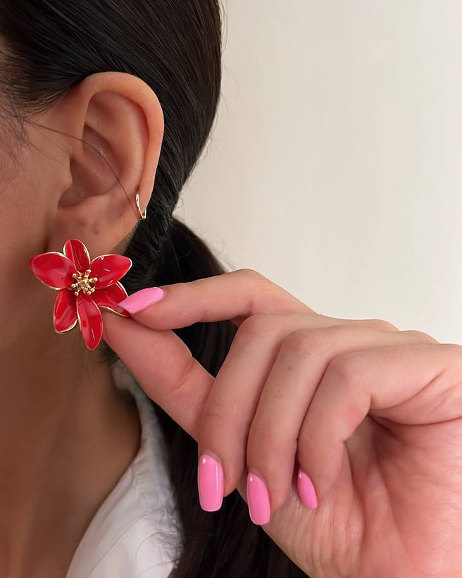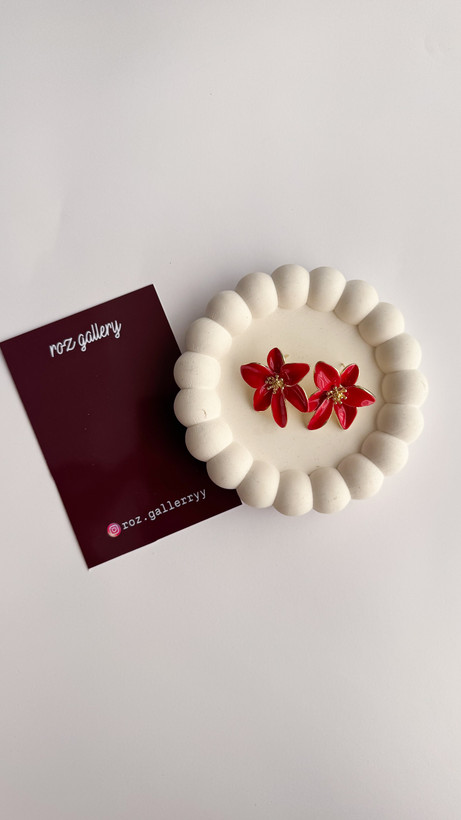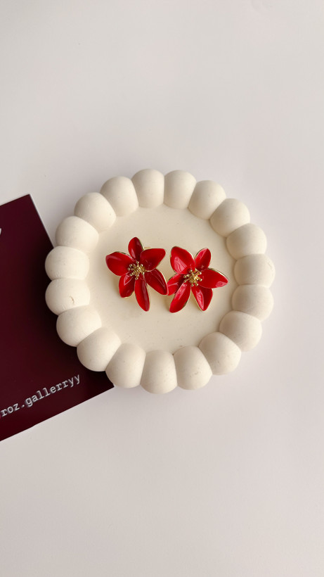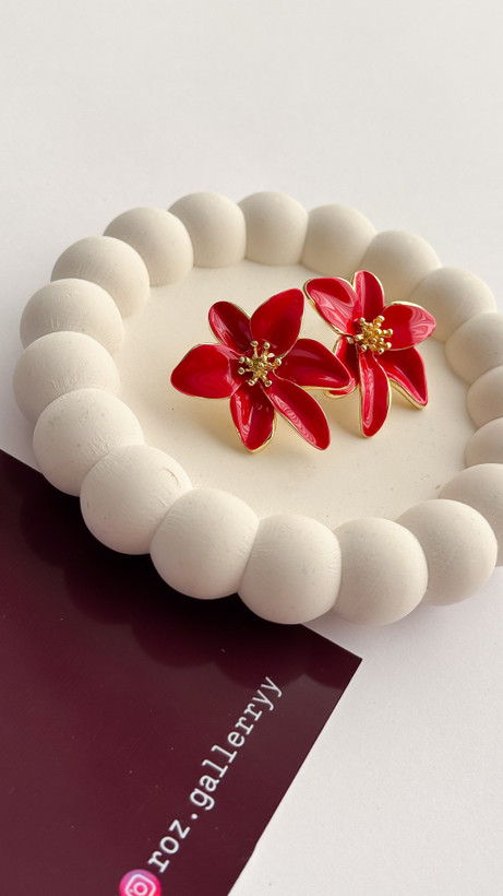 گوشواره گل قرمز میناکاری گوشواره قرمز گوشواره میناکاری