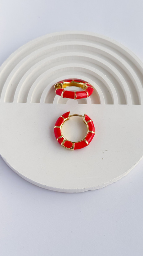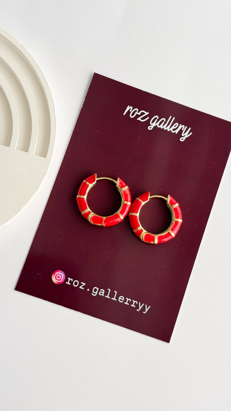 گوشواره حلقه ای میناکاری قرمز طرح بامبو گوشواره قرمز گوشواره زنانه